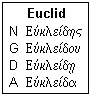 The adjectives for equal, unequal and impossible are much used in Euclid. They are shown in the box on the right. A word can be negated in Greek by prefixing an α (or αν before a vowel), which is called the α-privative. When the adjectives for equal and possible are negated, note that the declension changes from three endings to two endings, and that there may be a change in accent.