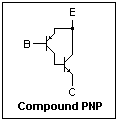 To reduce the current drive requirements of a power stage, Darlington-connected transistors can be used. For a complementary emitter follower, the complement to the Darlington is the compound PNP shown at the left. High-power design is somewhat complicated, since attention must be paid to maximum power ratings, thermal effects, and overcurrent protection. Nevertheless, the basic circuits and principles have been presented here.