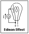 Devices in which a stream of electrons is controlled by electric and magnetic fields have many applications in electronics. Because a vacuum must be provided in the form of an evacuated enclosure in which the electrons can move without collisions with gas molecules, these devices were called vacuum tubes or electron tubes in the US, and thermionic valves in Britain. In 1883, Thomas Edison observed that a current flowed between the filament of an incandescent lamp and a plate in the vacuum near it (see figure at the right), when the plate was connected to the positive end of the filament, but not when the plate was connected to the negative side (the plate was actually between the two legs of the filament). No important application was made of this unexplained Edison Effect at the time. In 1899, J. J. Thomson showed that the current was due to a stream of negatively-charged particles, electrons, that could be guided by electric and magnetic fields. Fleming patented the diode in 1904 (B.P. 24850), where a filament and plate were arranged in the same envelope in a rather low vacuum, which could be used as a rectifier, or as a rather insensitive radio detector. In 1907, Lee de Forest patented the triode (which he called the Audion; the term "triode" was not used until much later, after it threated to become a trade name), in which a third electrode, the grid, was introduced to control the electron stream. This made a more sensitive detector, but the amplifying property was not used at first, and de Forest, who did not understand well what was going on, defended gassy tubes with their gas amplification. The introduction of high vacuum, as well as improved materials and processes, especially metal-to-glass seals, created a very useful amplifying device that allowed great developments in radio, telephony and sound reproduction. Schottky suggested a screen grid between the plate and control grid to make the electron tube useful at higher frequencies in 1919 (and actually made tubes with a second grid, but this was for space-charge control), but this was only realized by Hull and Williams in 1928 in radio receivers. The metal tube was introduced in 1935, but glass envelopes never disappeared and were constantly improved. The final pattern of electron tube was the "miniature" or all-glass type, which became the predominant receiving-type tube after about 1945. Transistors were invented in 1948, and in the next decade were improved to the point where they could take over most of the amplifying applications of electron tubes at much lower cost, and with greater reliability. Electron tubes remain in use as cathode-ray tubes, magnetrons, X-ray tubes, and for handling large powers. They were remarkable devices, using many sophisticated materials and processes, yet were widely available at low cost. We shall look here mainly at examples of receiving tubes, the smaller amplifying devices that have been completely replaced by semiconductors in current practice, but nevertheless will deepen our knowledge of electronics, while being fascinating to study. The name "receiving" comes from their use in radio receivers, their principal commercial application, but refers to all small vacuum tubes for general electronic purposes. For the cathode-ray tube and making your own oscilloscope, see The Cathode-Ray Tube.