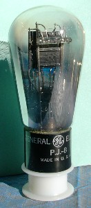 One of your first experiments with vacuum tubes should be an investigation of the triode, the fundamental thermionic amplifying device. Any triode at all will do, but I recommend one of the most generally useful triodes, the medium-mu triode. The tube almost universally found in the electronics laboratory was the 6SN7, a dual medium-mu triode. A 6J5 was half of a 6SN7, as was the earlier 6F8-G. The 6CG7 was a miniature 6SN7. The single triodes are reasonably priced, at $5.00 or under, but dual medium-mu triodes tend to be expensive, although a Russian 6SN7-GT, currently or recently manufactured, can be obtained for about $6.00, and is an excellent choice. The 12AU7 is a miniature dual medium-mu triode, relatively expensive but still manufactured, with nearly the same specifications and very popular. The 2C22/7193 is a mysterious-looking medium-mu octal triode in a GT envelope with two caps, one for the grid and one for the plate. There are also versions with different heater specifications, such as the 12SN7, which are otherwise identical. In what follows, I shall assume that you have chosen the 6SN7GT or the 6J5.
