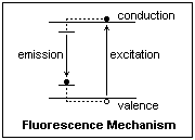 This was called fluorescence, after its occasional but typical occurrence in fluorite, CaF2. The fact that fluorite is not always fluorescent shows that it is not the crystalline matrix, but the impurity, that is responsible. ZnS and CdS phosphors are made by fusing a mixture of the host material, a flux such as NaCl, and the desired impurities. Note that the wavelengths that are absorbed are different from those emitted, so that a luminescence center is transparent to its own radiation, a necessary condition for good efficiency.