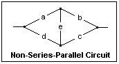 An example of a non-series-parallel circuit is shown at the right, the familiar "bridge" circuit. In addition to the paths ab and cd, there are also aec and deb, so its Boolean representation is X = ab + cd + aec + deb, which gives no hint as to its physical structure. Non-series-parallel circuits, which are generally more economical than equivalent series-parallel circuits, must be discovered by ingenuity, not Boolean algebra.