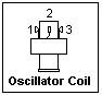 An oscillator using a 6SA7 pentagrid converter is shown at the left. A 6BE6 can be used instead, if you wish. The circuit will not oscillate with an unbypassed resistor in the plate lead, but you can measure the DC plate current with a DMM instead. L1 is an "oscillator coil" as shown at the right, where terminals 1 and 3 are the ends of the coil, and terminal 2 is a tap, near the terminal 1 end of the coil.