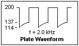Study the plate waveforms using different values of R1 and R2. Note that the amplitude of the main plate swing (ignoring the negative spike) is proportional to R1, which can have values between 4.7k and 47k (10k seems a good value). R2 can be anything between 10k and 1M, and has the principal effect on the period of oscillation. Also look at the grid waveforms, which are a series of exponential decays (tube off) and constant values near zero (tube on).