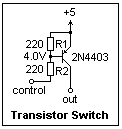 Some chips may consume so much power on standby that it may be desirable to power them down unless enabled. This is easily done with a PNP saturated switch, using a PN2907 or a 2N4403, as shown in the figure. The base should be driven by a 7407, 74S09 or equivalent, since about 18 mA is required for hard saturation, and a normal LSTTL output can provide only 8 mA. The collector will then be no more than 0.1 V below the emitter. Depending on the output current required, the base drive may be made less by increasing R2 (base drive = 4.0/R2).